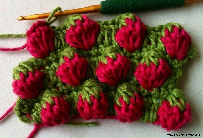 Узор крючком КЛУБНИЧКИ. Схема