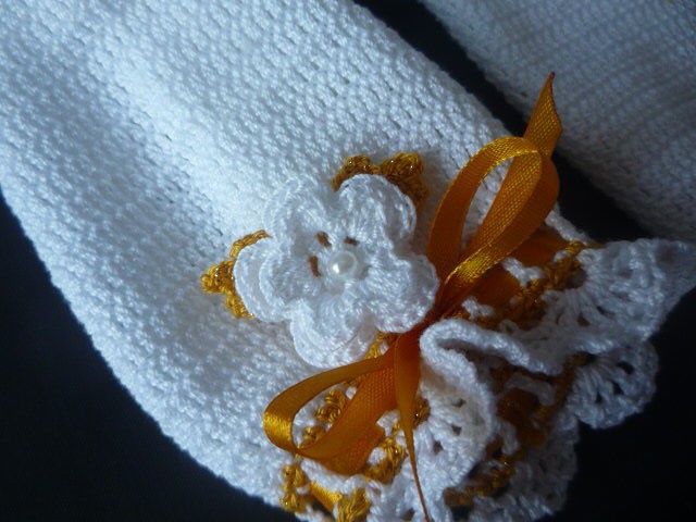 Ну а потом украшаем на свой вкус, прячем кончики. Второй пинеток вяжется аналогично.