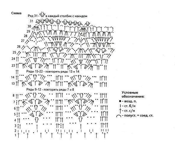 Нить обрываем, делаем обвязку по ниждему краю. я вязала ракушки из 3 полустолбиков.
