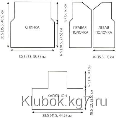 the length of the hood reaches 19.5 (21.5; 22.5) cm from the edge of the neckline. Bind off.