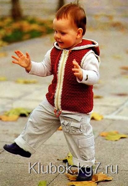 The vest can also be knitted from blue yarn, but then the cord should also be blue.