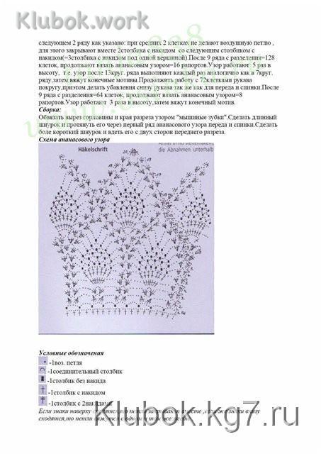 накидом, далее через 10 рядов 4 столбика с накидом, воздушная петля, 4 столбика