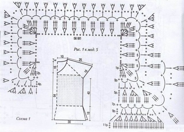 (2 сбн, 2 вп, пропустить 2 п.) — повторить.