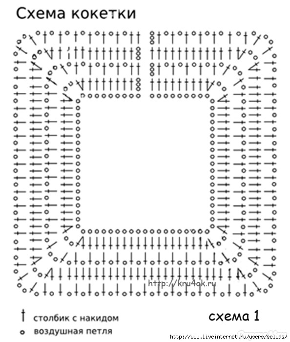 Первый ряд я вязала не как на схеме 3 ССН 2ВП 3 ССН, а 2 ССН 2 ВП 2 ССН. А со 2 ряда пошла вязать уже по схеме.