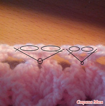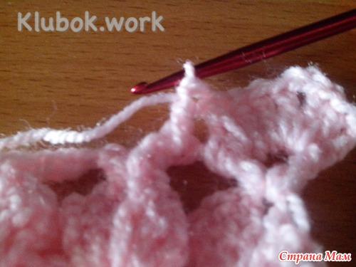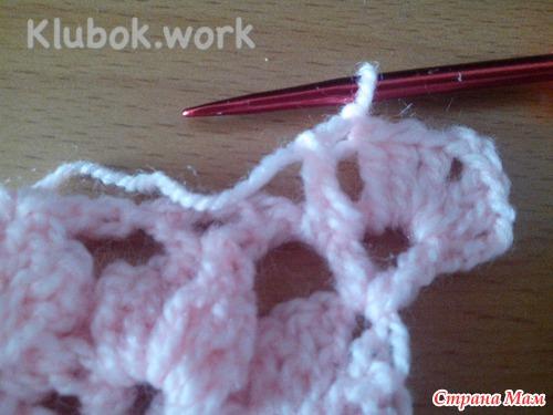 1р: провязываем 40 полу ст. с 1 нак. 2р.вяжем подъем,1 п.с. с 1 нак., в 1 петлю 2 п.с. с 1 нак. и до конца ряда. 3р:вяжем все п.с. с 1 нак. в каждую в.п. 4р:вяжем как и 2 ряд.подъем,1 п.с. с 1 нак., в 1 петлю 2 п.с. с 1 нак. и до конца ряда. 5р и 6 р: все п.с. с 1 нак. в каждую в.п. 7р:подъем,2 п.с. с 1 нак., в 1 петлю 2 п.с. с 1 нак.,,2 п.с. с 1 нак., в 1 петлю 2 п.с. с 1 нак. и до конца ряда. 8 р,9 р: все п.с. с 1 нак. в каждую в.п.(Должно получиться 112 п.с. с 1 нак.если не хватает добавьте в 8,9 ряду пару п.с.с 1 нак.) 10 ряд делем спинка по 16, перед 32, рукава по 24. Провязываем 16 п.с.с 1 нак. делаем прибавление 5 в.п. для рукава, вяжем след.32 п.с.с 1 нак. и до конца ряда. Основной узор: Соед.вязание.в 1 в.п.вяжем 2 ст.с 1 нак.(между ними 2 в.п.),пропускаем 2 в.п., 2 ст.с 1 нак.(между ними 2 в.п.) Далее вяжем 3 ст.с 1 нак между ними 1 в.п.и опять 3 ст. с 1 нак. и цепляем за стенку V на фото надеюсь будет понятно, цепляем за сосед. стенку опять 3 ст.с 1 нак между ними 1 в.п.и опять 3 ст. с 1 нак.и цепляем за стенку |