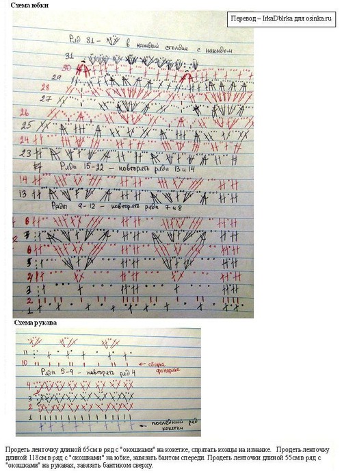 Продеть ленту длиной 55 см в ряд с "окошками" на рукавах, завязать бантиком сверху.