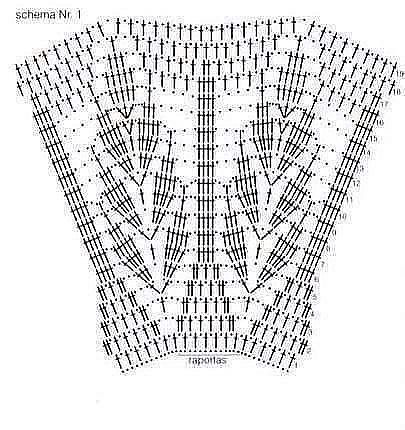 Ряд 11 (прибавления): сменить крючок на больший, 3 вп, 1 ст. в след. 2 ст., *в арку из 1 вп – 1 ст, 1 вп, 1 ст, в след. 2 ст. – по 1 ст.; повторять от * до конца ряда = 121 ст.