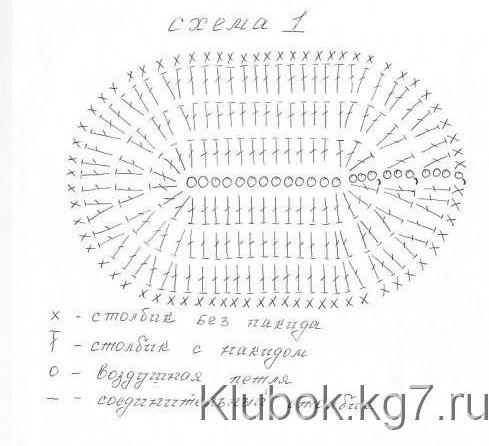 We cast on 16 chain stitches. In the fourth stitch from the hook, we make 3 double crochets. Then we knit according to scheme 1. In the fourth row, there should be 70 stitches.