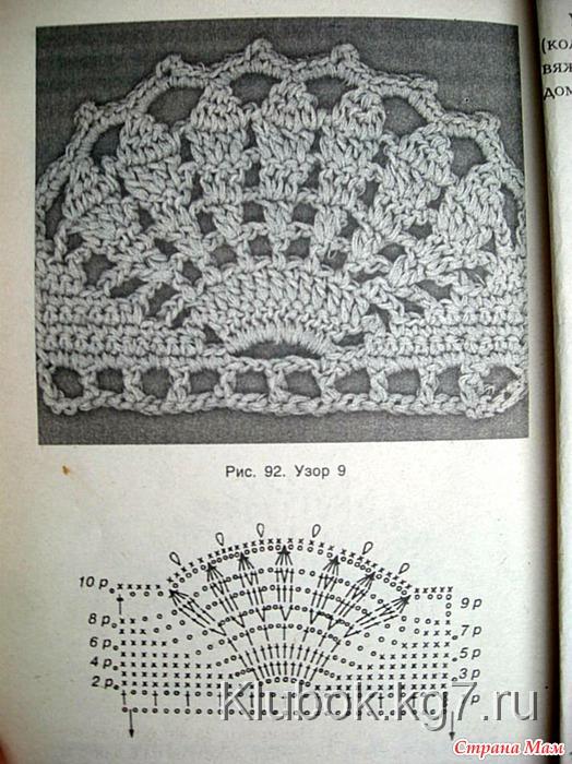 Основной узор по 1 схеме, рюши по 2 схеме, я набирала 210 петель, вязала снизу вверх, потом внизу надвязывала рюши. Поля панамки вязала по второй схеме, только в веерочке добавила 1 лепесток, иначе поля будут практически одной ширины с панамкой."