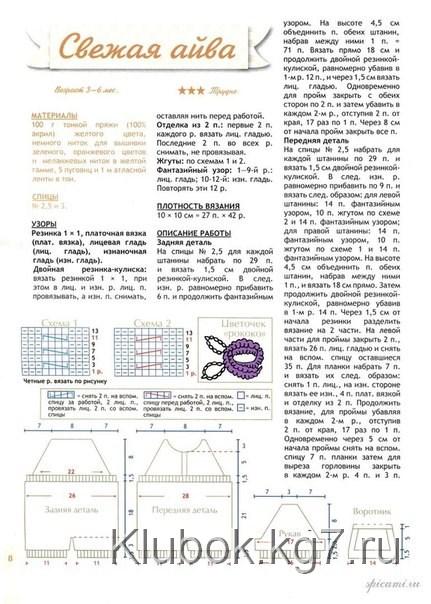 Присутствуют 2 схемы фантазийного узора и выкройки деталей изделия: спинка, перед, рукав, воротник.