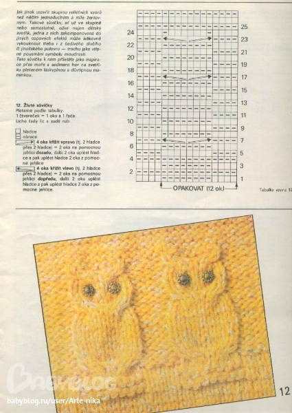 Узор «Сова» - выполнен спицами. Простой в исполнении, но интересный визуально, он станет прекрасным украшением кармана, шапки, детской кофты и т.д.