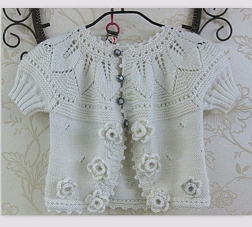Кардиган для девочкиKlubokhttp://klubok.work/23/182/7479/Klubokhttps://klubok.work/css/image/top-logo-en.pngКардиганчик для девочки Описание с Осинки: 1 ряд- набрать 53 петли. 2,4,6,8 ряд- лицевые. 3,5 ряд -изнаночные, 7 ряд- 1 кромочная, 1изн *1накид 2 вместе изн 2 изн * 1 накид 2 вместе 1 изн. 9р- 1 кр 3 лиц *1 изн 3 лиц* 1 кр. 10р- 1кр* 1 изн 1 нак 1изн 1 нак 1 изн 1 лиц* 1 изн 1 нак 1изн 1 нак 1изн1 кр. 11, 13,15ряд- по рисунку, накиды лицевыми. 12 ряд- 1 кр *2 изн 1 нак 1 изн 1 нак 2 изн 1 лиц* 2 изн 1 нак 1 изн 1 нак 2 изн 1кр. 14 ряд- 1 кр *3 изн 1 нак 1 изн 1 нак 3 изн 1 лиц* 3 изн 1 нак 1 изн 1 нак 3 изн 1 кр. 16 ряд- 1 кр *4 изн 1 нак 1 изн 1 нак 4 изн 1 лиц* 4 изн 1 нак 1 изн 1 нак 4 изн 1 кр. 17 ряд- 1 кр *1 нак 2 вместе с наклоном налево 7 лиц 2 вместе 1 нак 1 изн*. 18,20,22,24,26 ряд- по рисунку накиды изнаночными. 19 ряд- 1 кр 1 изн *1 нак 2 вместе с наклоном налево 5 лиц 2 вместе 1 нак 3 изн* 1 нак 2 вместе с наклоном налево 5 лиц 2 вместе 1 нак 2 изн. 21 ряд- 1 кр 2 изн *1 нак 2 вместе с наклоном налево 3 лиц 2 вместе 1 нак 5 изн*1 нак 2 вместе с наклоном налево 3 лиц 2 вместе 1 нак 3 изн. 23 ряд- 1 кр 3 изн *1 нак 2 вместе с наклоном налево 2 лиц 1 вместе 1 нак 7 изн*1 нак 2 вместе с наклоном налево 1 лиц 2 вместе 1 нак 4 изн. 25 ряд- 1 кр 4 изн *1 нак 3 вместе лицевой 1 нак 9 изн*1 нак 3 вместе лицевой 1 нак 5 изн. 27,29,31 ряд- изнаночные. 28,30,32 ряд- лицевые. 33 ряд- 1кр * 1нак 2вместе лицевой* Еще одно описание с Осинки: Сначала набираете необходимое кол-во петель и вяжете лицевыми петлями по лицу и изнанке 2 см., затем по всем петлям провязываете две вместе лиц, накид, и еще один ряд (по изнанке) лиц. петли. Теперь начинаем вязать кокетку. Я для пробы взяла на толстых нитках, других не было (260м в 100 гр) и у меня получилось 10 листиков, в идеале 12. Четные ряды вяжут изн. 1 ряд - 1 кромочная, 2 лиц., накид, 1 лиц., накид, 2 лиц., 1 изн... в конце ряда 2 лиц.(изн., завершающую раппорт не вяжут), 1 кромочная. 3 ряд - 1 кромочная, 3 лиц., накид, 1 лиц., накид, 3 лиц., 1 изн... в конце ряда 3 лиц., 1 кромочная. 5 ряд - 1 кромочная, 4 лиц., накид, 1 лиц., накид, 4 лиц., 1 изн... в конце ряда 4 лиц., 1 кромочная. 7 ряд - 1 кромочная,5 лиц., накид, 1 лиц., накид, 5 лиц., 1 изн... в конце ряда 5 лиц., 1 кромочная. 9 ряд - 1 кромочная, накид, 2 вместе лиц.,9 лиц, 2 вместе лиц., накид, 1 изн... в конце ряда накид, 1 кромочная. 10 ряд и все последующие ряды- изнаночные петли и накиды из 9 ряда провязываем лиц., все остальные изн. петли 11 ряд - 1 кромочная, накид, 2 вместе лиц.,7 лиц, 2 вместе лиц., накид, 3 изн... в конце ряда накид, 1 кромочная 13 ряд - 1 кромочная, накид, 2 вместе лиц.,5 лиц, 2 вместе лиц., накид, 5 изн... в конце ряда накид, 1 кромочная 15 ряд - 1 кромочная, накид, 2 вместе лиц.,3 лиц, 2 вместе лиц., накид, 7 изн... в конце ряда накид, 1 кромочная 17 ряд - 1 кромочная, накид, 3 вместе лиц., накид, 9 изн... в конце ряда накид, 1 кромочная. Затем провязываем лиц. петлями рядов 6-8. Теперь распределяем петли, на регланную линию идет две петли, всего у нас четаре регланных линий, значит 2х4=8 петель. От общего кол-ва петель отнимаем 2 кромочные и 8 регланных петель, оставщееся петли делим на 3 ( перед, два рукава, спинка) Допустим у нас 142 петли. 142-2-8=132 132/ 3 = 44 Значит на полочках будет 22 петли (44/2) + кромочная На рукава тоже 22 петли (44/2) На спинку 44 петли Получится так 1 кромочная, 22 петли правая полочка, 2 петли регланной линии, 22 петли правого рукава, 2 петли регланной линии, 44 петли спинки, 2 петли регланной линии, 22 петли левого рукава, 2 петли регланной линии, 22 петли левой полочки, 1 кромочная - всего 142 и вяжете добавляя в каждом лиц. ряду по одному накиду с каждой стороны от реглан