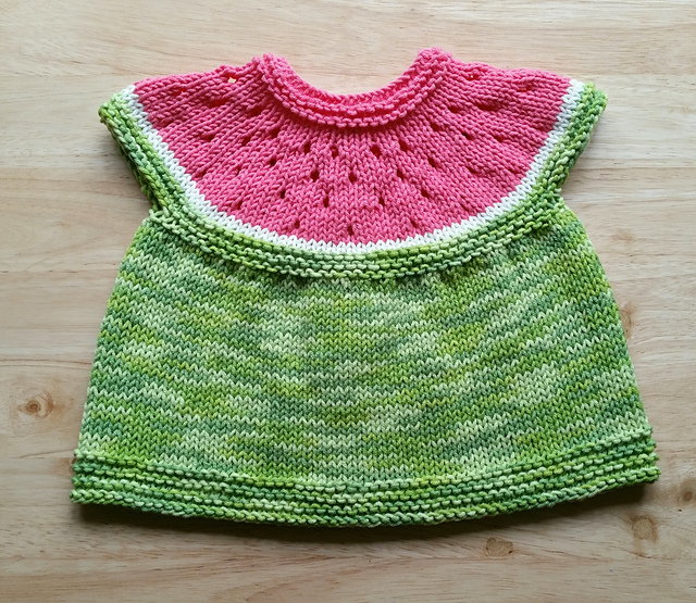 Очень люблю вещи с арбузными рисунками. Дочка уже носит арбузные костюмы, сарафан, шорты, купальник — а мне все мало. Когда вижу в интернете еще и вязаные вещи — мое сердце замирает. Делюсь.