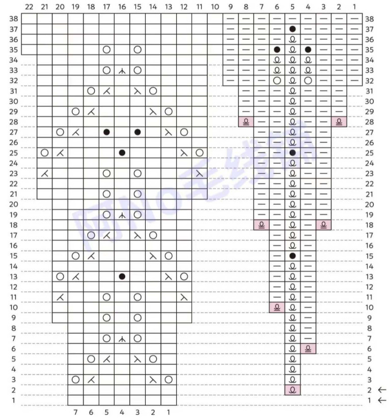 затем в каждом раппорте прибавить по 1 петле, равномерно прибавив 12 петель всего.