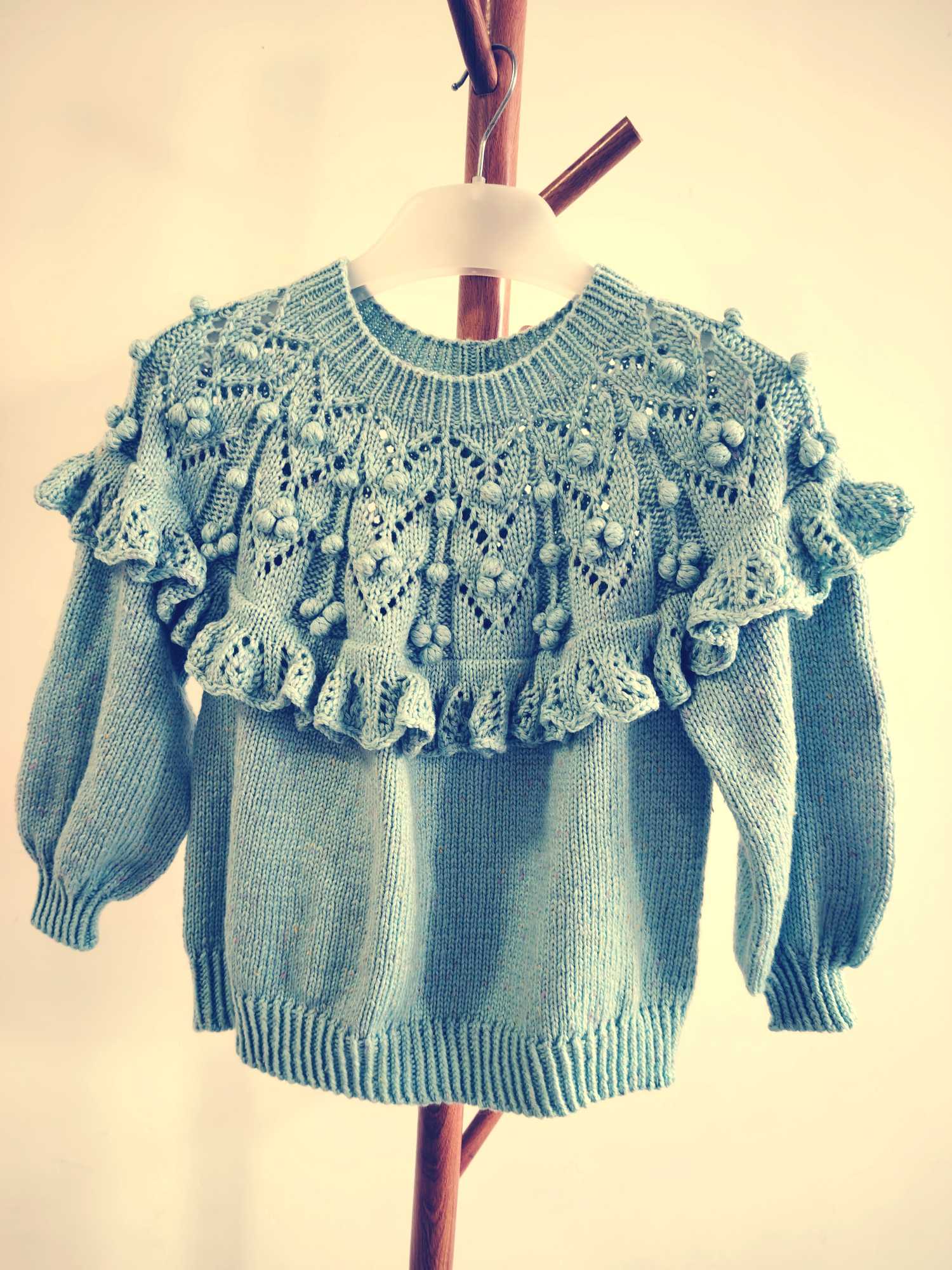 An interesting cardigan model with a round yoke for a girl. Knitting instructions for different sizes and ages of the child.