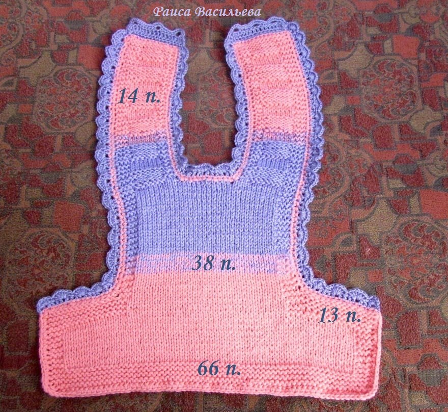 Слова автора Раисы В- Сначала обвязывала СБН розовоым цветом - внешний край полочек вязала специально посвободнее, внутренний потуже.