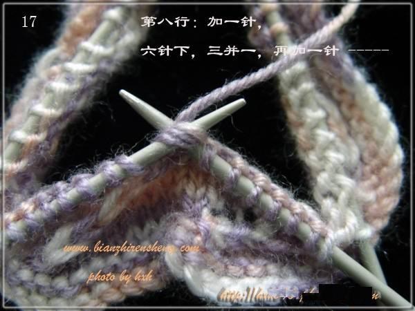 4 ряд: накид, 9 лиц, 3 вместе( протяжка)т.е. ( 2 провязать вместе, протянуть через 3-ю).