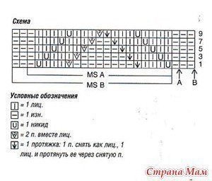 - 4 п. платочной вязки, 4 п. глади, 25 п. диаграммы и 9 п. глади.
