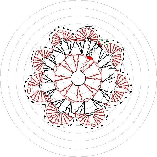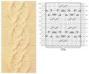 Далее набираем петли на рукав, у меня 46 петель. Центральные 16 петель рукава вяжем по следующей схеме , остальные петли- платочная вязка. Убавки на рукаве делаю по 1 петле с каждой стороны рукава в каждом 12 ряду. Через 20 см от начала рукава в лицевом ряду вяжу следующим образом: 12 лиц, 2 вместе лиц, 2 лиц, 2 вместе лиц, 2 лиц, 2 вместе лиц, 2 лиц, 2 вместе лиц, 12 лиц. Дальше вяжу платочной вязкой. Через 2 см в изнаночном ряду меняю нить на фиолетовую и вяжу 2 ряда, меняю нить на серую- 2 ряда, 1 ряд молочный, закрываем рукав. Второй рукав вяжем аналогично симметрично первому. Сшиваем рукава и бока жакета, пришиваем пуговицы, стираем. Наш жакет почти готов. Осталось связать бабочку и пришить к жакету. Бабочку вяжем крючком по этой схеме: (рисовала впервые в программе MyCrochet, так что обессудьте, как смогла)