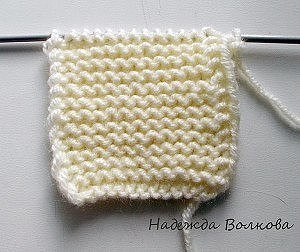 Для кармана набираю 14 петель и вяжу примерно 6 см платочной вязкой. Вот он наш кармашек. Теперь нам необходимо вставить его на место закрытых в полочке петель. Прямо одеть его на ту же спицу. Далее мы провязываем 2 петли полочки потом вместе последнюю петлю с полочки и первую от кармана, это мы делаем для того чтоб не образовалась дырочка на месте соединения. Потом мы вяжем петли кармана, и последнюю петлю кармана мы опять провязываем вместе с первой петлей полочки, довязываем до конца ряда. Итак наш карман связан, вот что должно получится: лицевая сторона изнаночная сторона