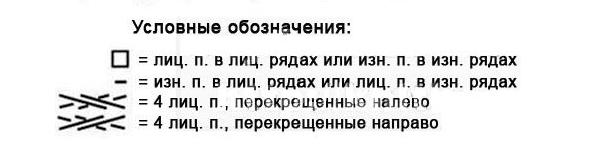4 лиц. п., перекрещенные направо: 2 п. оставить на вспом. спице за работой, 2 лиц., затем провязать лицевыми петли со вспом. спицы.