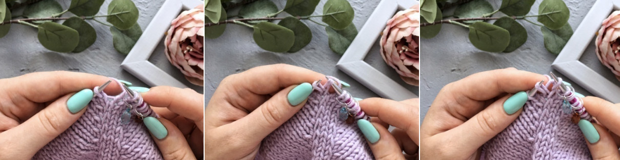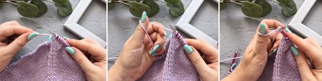 - обвязать рабочей нитью 3 петли и провязать их лицевой