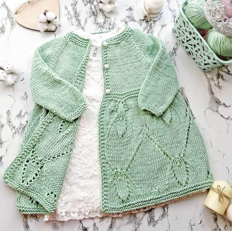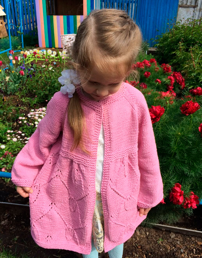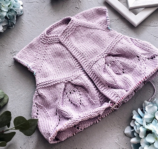 Продолжаем вязать «тело» кардигана без прибавок! Провязываем 2–4 ряда лицевой гладью (в лицевом ряду все петли лиц., в изнаночном ряду все петли изн.) и переходим на платочную вязку.