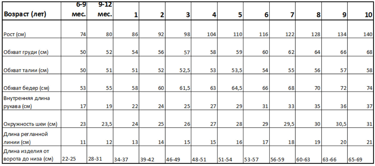 Перед началом работы выберите нужный размер, ориентируясь на мерки вашего ребенка.