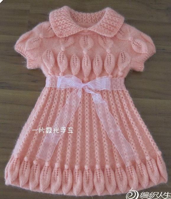 Платье в описании вяжется из ангоры в две нити, и если я правильно поняла перевод, то спицы использовались №9, но каждый подбирает под свои ниточки. Платье по описанию рассчитано на ОГ 62 см, в длину 60 см.