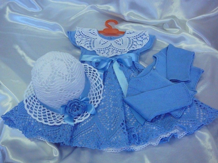После завершения работы над лифом вяжутся рукава, воротник и планка горловины.