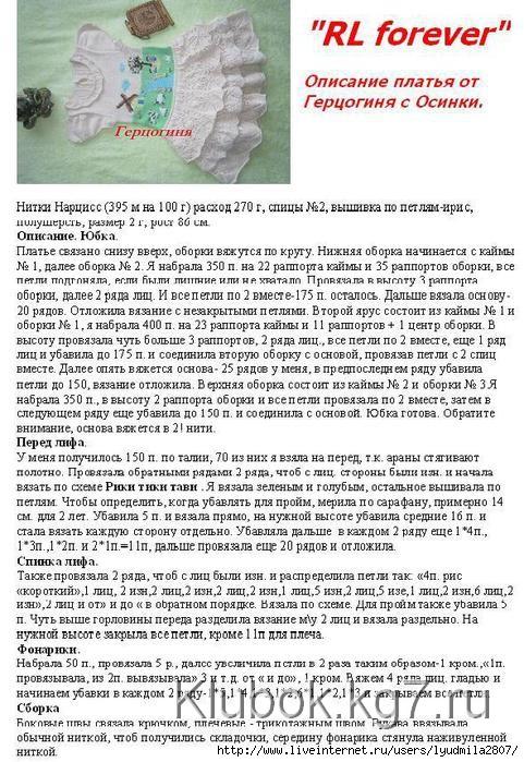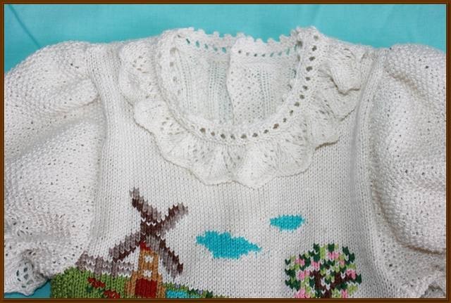 I had to recalculate everything for myself, as I didn't fit the size, although the children are of the same age and judging by her photos the girls are of similar build, but I have my doubts that she knitted the top of the dress with two strands, while I used one.... I made the sleeves my own way, I also found suitable frills for the sleeves and collar online. The Duchess doesn't have a button placket on the back, but I decided to make one... there's no ribbing, and the transition line from the front to the frills and collar is also a bit different for me...... in general, what turned out, turned out...