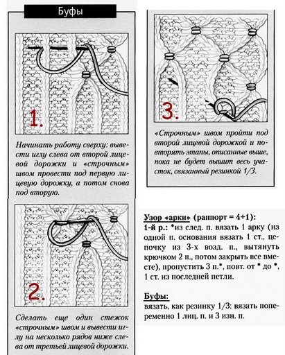 На спинку - 266 п. вместе с кром.Остается после "шишечек" 105 п. вместе с кром.(кром., 3 петли изн., далее раппорты по рисунку, заканчиваем 3 изн.,кромочная)