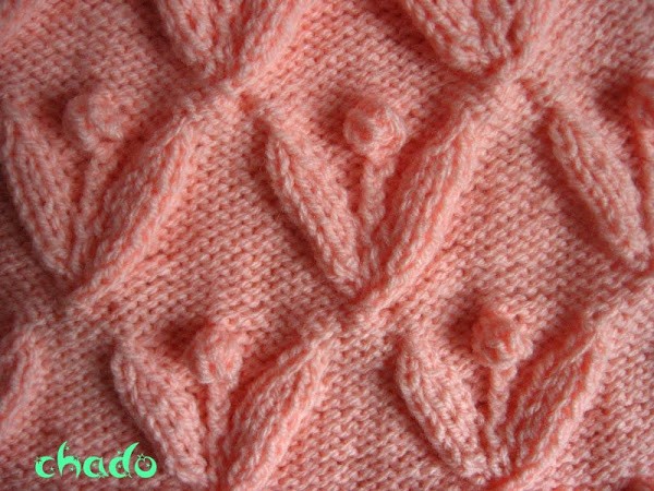 И еще вот что подумала: а может, между шишечками не лицевые вязать, а изнаночные? У нас же потом фон для побегов получается из изнаночных петель...
