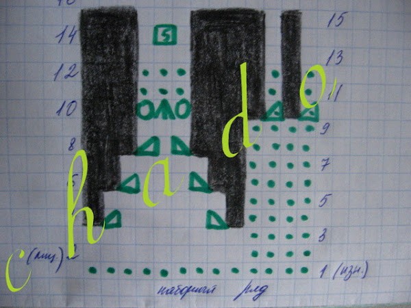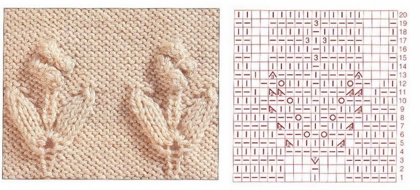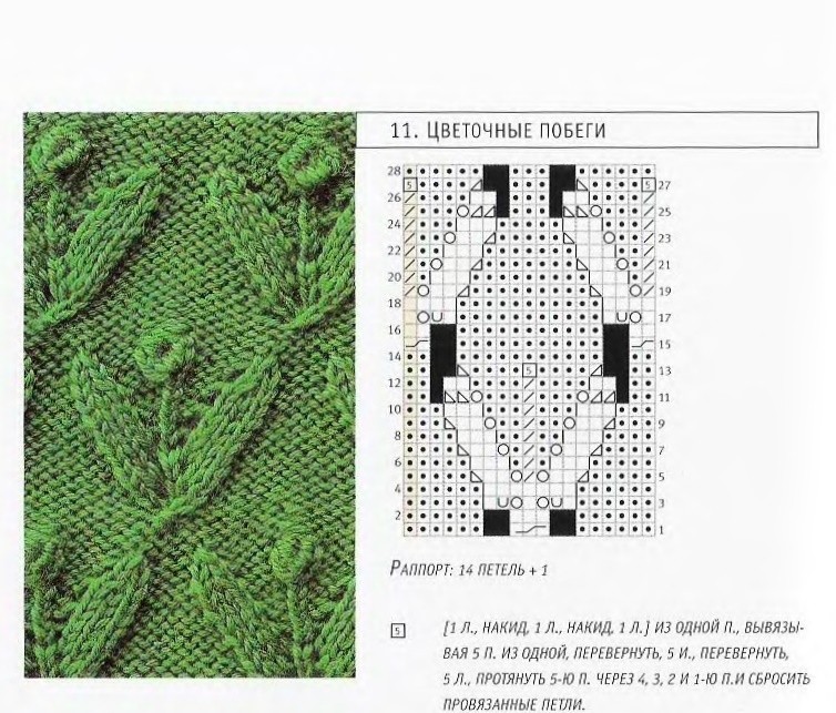 Еще: в схемке 11-й ряд показан изнаночным, но его, как я понимаю, надо вязать лицевыми, по рисунку, и в словесном описании так.