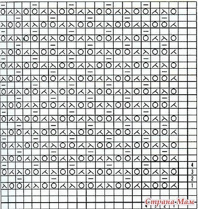 Пряжа - мерсеризованный хлопок LILY от VITA cotton, цвет 1610, в реале немного ярче, чем на картинках в интернет-магазинах, 125 м/50гр. Ушло около 200 гр. Заявлены спицы 3,5 - 4, я вязала на двоечке. Прелестное платьице для малышки 1-2 ЛЕТ. Юбочная часть Прелестное платьице для малышки 1-2 ЛЕТ. У имеющихся платьев/туник обхват подола не менее 70 см. Образец получился 25п. - 8,5 см. Т. е. нужно более 200 петель. С учетом раппорта (20 или 40 петель) и увеличения подола в большую сторону (на вырост) набрала 220 петель. Вязание начала снизу. С начала 4 ряда платочной вязки. Для юбочной части использую японский узор, его лучше вязать по кругу, поэтому вяжу на длинных чулочных спицах (круговых нужного номера и длины лески в нашем городе не нашла): Повторила 4 раза ряды с 1-го по 24-й, и один раз ряды с 1-го по 20-й, сузив немного верхнюю часть, не выполняя накиды, выделенные ниже на схеме голубым цветом. Итого юбочная часть получилась высотой 28 см и в верхней части 153 петли.