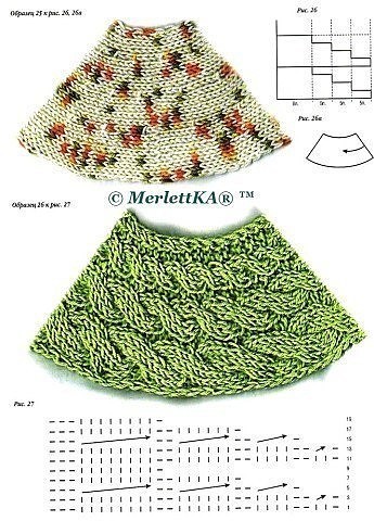 Для вывязывания складочек внизу из протяжек вяжем изнаночную петлю, в следующем лицевом ряду из протяжек с боков изнаночной пели, с обоих сторон, вяжем еще по изнаночной и т. д. единственное в первых 2 рядах лучше ложатся из протяжек, в последующих лучше делать накиды а в изн рядах провязывать скрещенными.