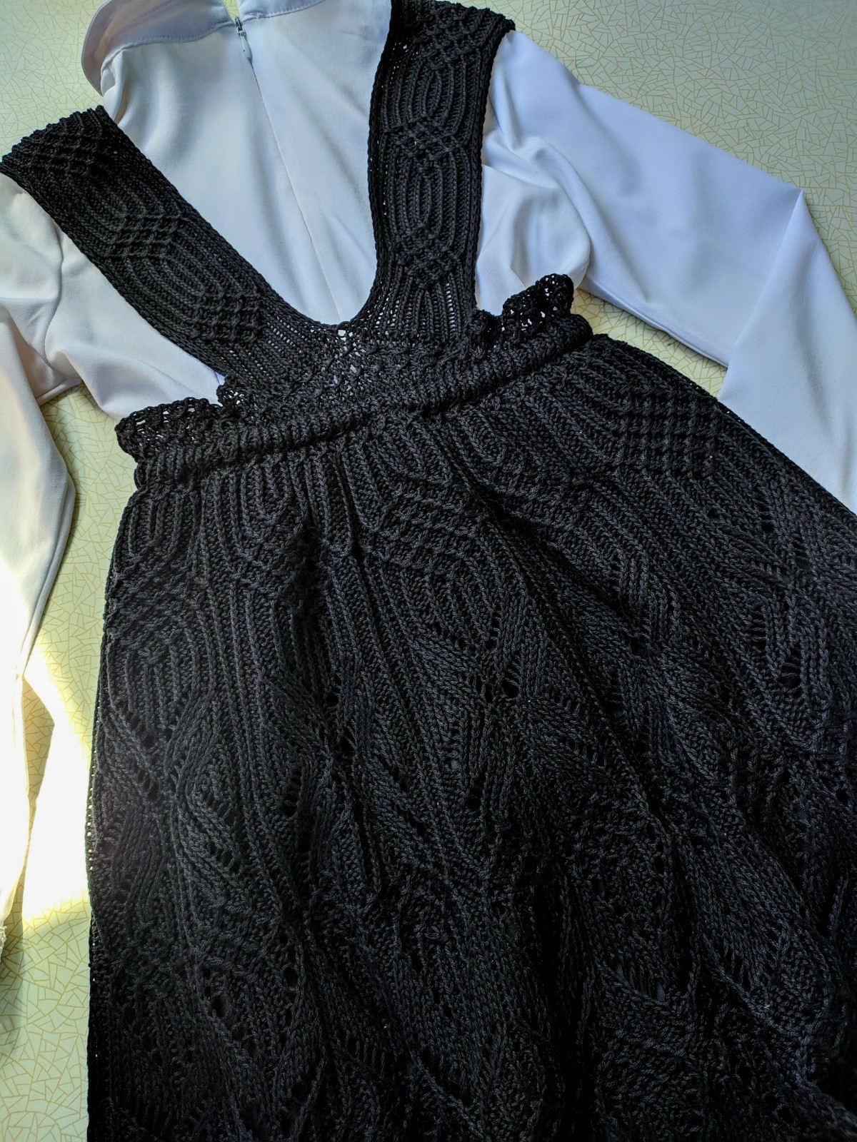Связан по схемам узоров японского дизайнера Хитоми Шида, спицами 2 мм. Пряжа "Лиля" Семеновской фабрики, 100 гр - 392 м, цвет черный, ушло чуть меньше 200 гр. К поясу пришита резинка, снизу хлопковый подклад.Связан по схемам узоров японского дизайнера Хитоми Шида, спицами 2 мм. Пряжа "Лиля" Семеновской фабрики, 100 гр - 392 м, цвет черный, ушло чуть меньше 200 гр. К поясу пришита резинка, снизу хлопковый подклад.