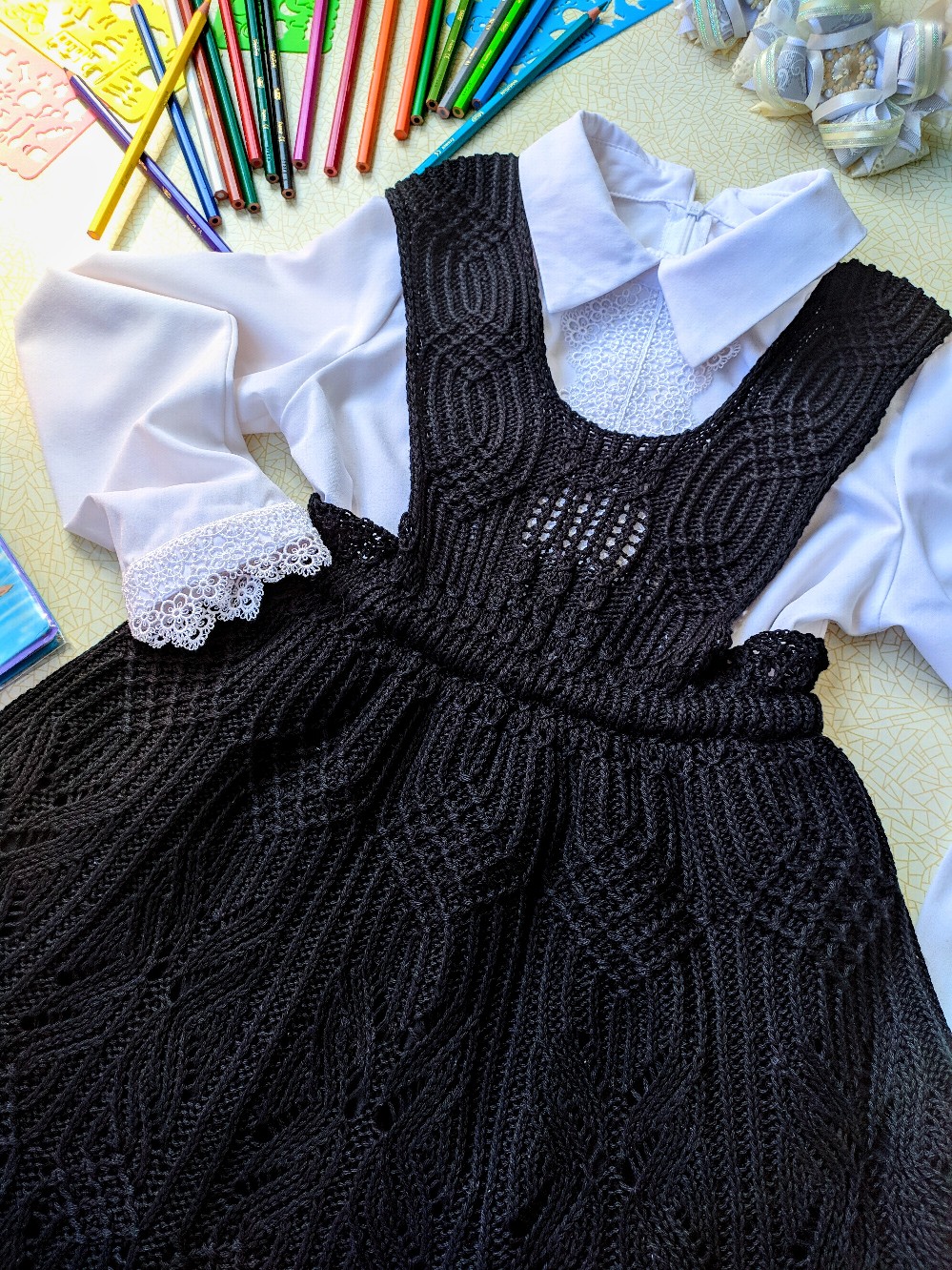 Школьный сарафан узорами от ХитомиKlubokhttp://klubok.work/23/186/8333/Klubokhttps://klubok.work/css/image/top-logo-en.png