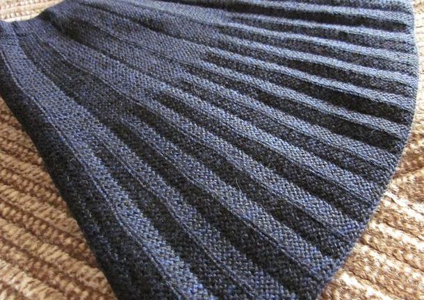 Когда в платочной вязке (половине клина) стало 11 петель на этих петлях стала вязать 2 маленьких клина - складки стали помельче, но их стало больше.