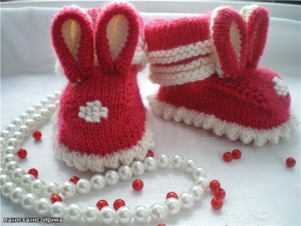 3, 4 ряды – лицевые. Белую нить завязать и обрезать.