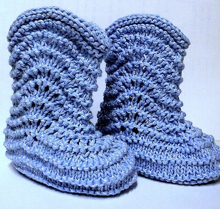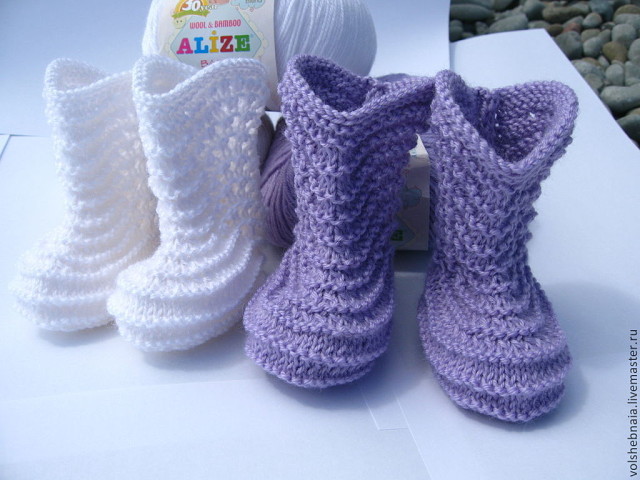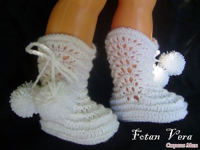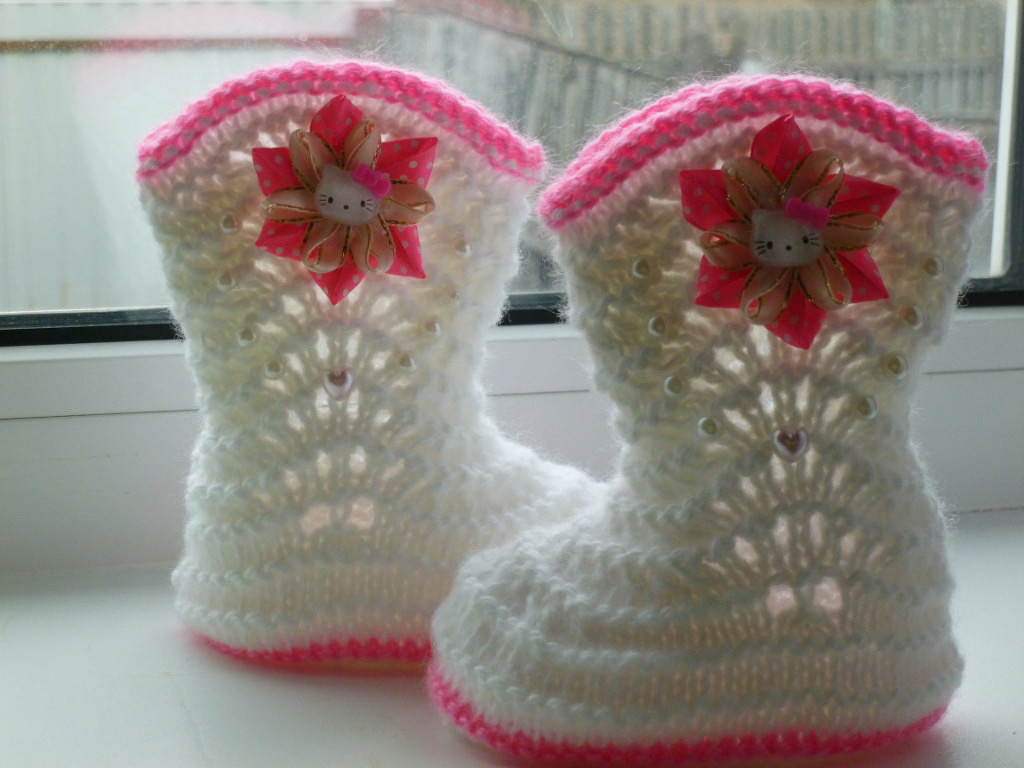 В эти сапожки я прямо влюбилась. Вяжутся легко и быстро. Я использовала акриловую ниточку средней толщины. Расход небольшой. Если кто хочет связать то выставляю описание которое нашла в инете и по которому вязала. Подошва – платочная вязка, прибавки в четных рядах.