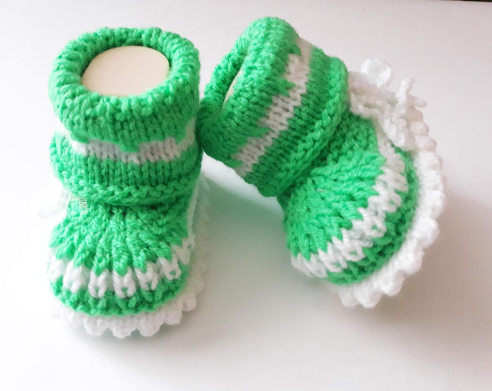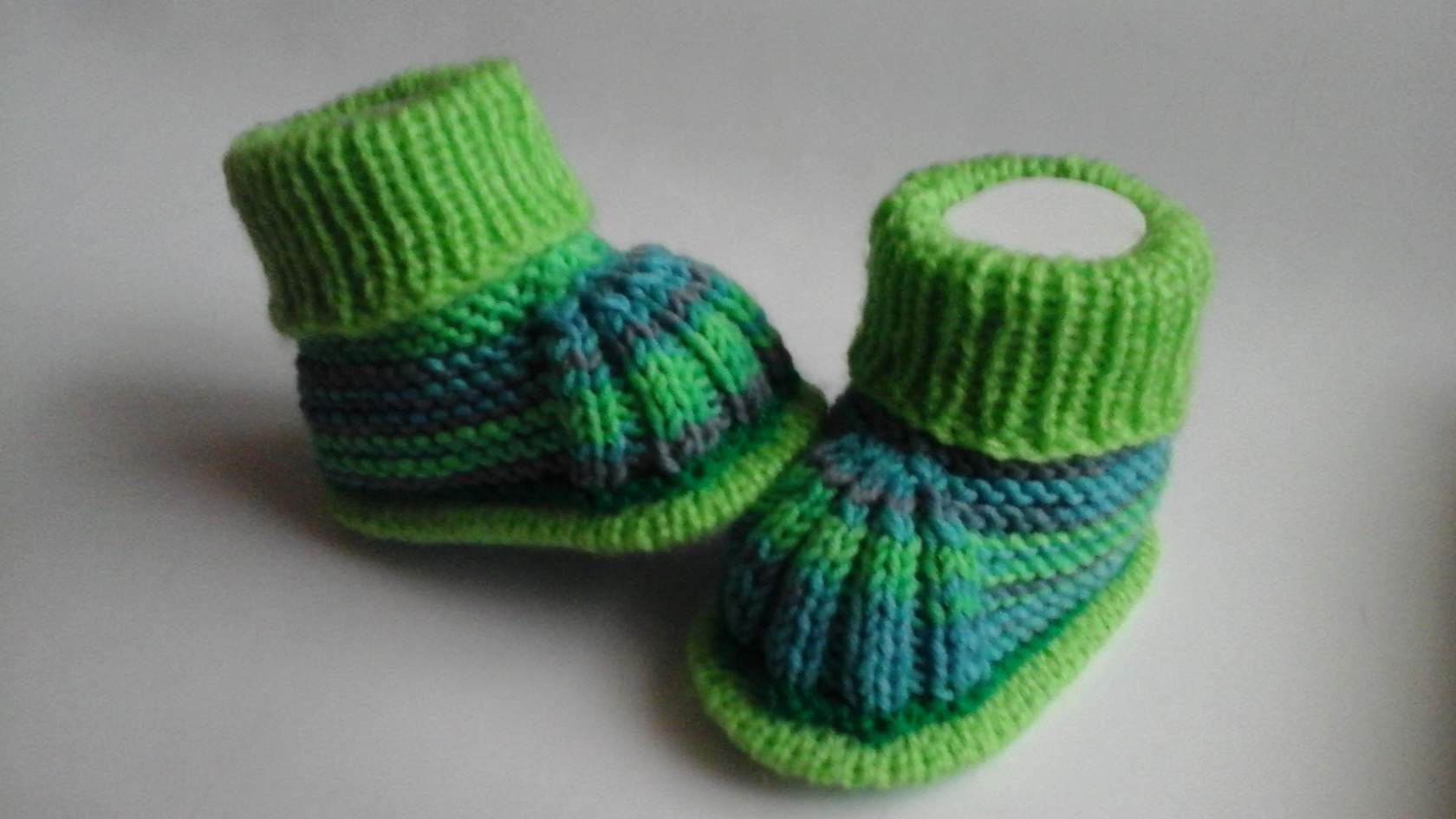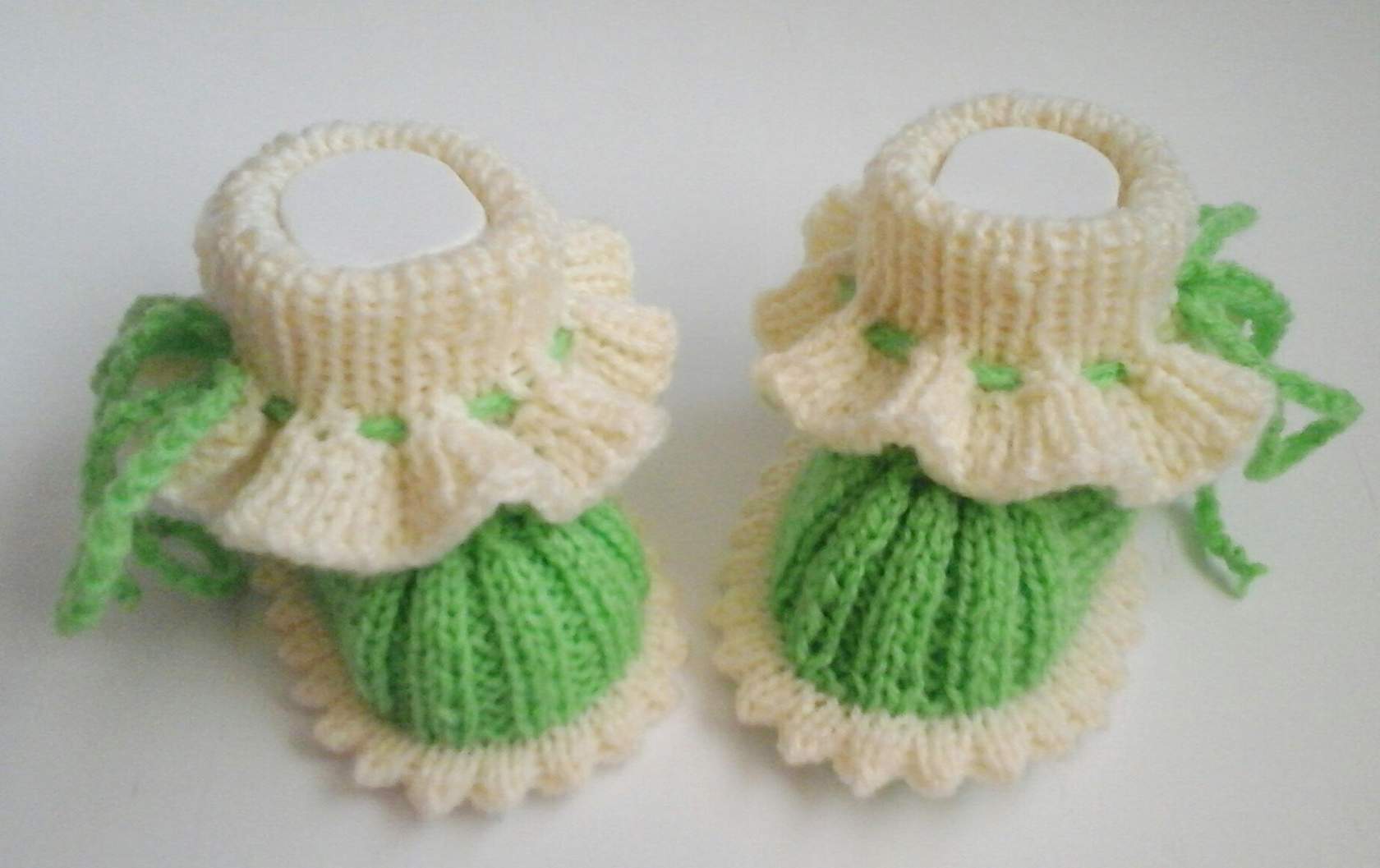 Виды вязки – 1) «платочная» (все петли лицевые) 2) резинка 2х2 (2 лицевые, 2 изнаночные петли) 3) резинка 1х1 (1 лицевая, 1 изнаночная) Начинаем вязать с середины подошвы. Подошва вяжется платочной вязкой. На спицы набрать 40 петель. 1-й и 2-й ряд – все петли лицевые. Начиная с 3-го ряда надо прибавлять в каждом втором ряду 4 раза по 4 петли (по одной петле по краям и две петли в середине). Новую петлю добавляем из перетяжек между петель. Перетяжку перед провязыванием нужно перекрутить, чтобы не образовалась дырка и вязание было плотнее. Перетяжку между петель поднимаем, перекручиваем и провязываем. 3-й ряд – 1 кромочная, 1 петлю прибавить лиц., 18 лиц., 1п. прибавить лиц., 2 лиц, 1 прибавить лиц., 18 лиц., 1 прибавить лиц., 1 кромочная. 4-й ряд – все лицевые. 5-й ряд - 1 кромочная, 1 лиц., 1 петлю прибавить лиц., 18 лиц., 1п. прибавить лиц., 4 лиц, 1 прибавить лиц., 18 лиц., 1 прибавить лиц., 1 лиц, 1 кромочная. 6-й ряд – все лицевые. 7-й ряд - 1 кромочная, 2 лиц., 1 петлю прибавить лиц., 18 лиц., 1п. прибавить лиц., 6 лиц, 1 прибавить лиц., 18 лиц., 1 прибавить лиц., 2 лиц, 1 кромочная. 8-й ряд – все лицевые. 9-й ряд - 1 кромочная, 3 лиц., 1 петлю прибавить лиц., 18 лиц., 1п. прибавить лиц., 8 лиц, 1 прибавить лиц., 18 лиц., 1 прибавить лиц., 3 лиц, 1 кромочная. 10-й, 11-й и 12-й ряды – все петли лицевые. Всего прибавлено 16 петель. На спицах теперь 56 петель. Подошва готова. Делим петли на 3 части – две боковые и средняя часть. Боковые части вяжутся платочной вязкой, средняя – резинкой 2х2. Петли надо рассчитать так, чтобы средняя часть пинетки начиналась и заканчивалась двумя лицевыми петлями. В моём примере получилось – средняя часть 18 петель и две боковые части по 19 петель, включая кромочную петлю. 1-й ряд – 1 кромочная, 18 лицевых, 18 петель резинкой 2х2 (2лиц, 2изн, 2лиц, 2изн, 2лиц, 2изн, 2лиц, 2изн, 2лиц), 18 лицевых, 1 кромочная. 2-й ряд - 1 кромочная, 18 лицевых, 18 петель резинкой 2х2 уже по рисунку (2изн, 2лиц, 2изн, 2лиц, 2изн, 2лиц, 2изн, 2лиц, 2изн), 18 лицевых, 1 кромочная. 1-й и 2-й ряд повторить ещё 5 раз. Теперь после подошвы провязано 12 рядов. Со следующего 13-ого ряда начинаем делать убавления. 13-ряд - 1 кромочная, 18 лицевых, 2 вместе лицевой, 2 вместе изнаночной, 2 вместе лицевой, 2 вместе изнаночной, 2 вместе лицевой, 2 вместе изнаночной, 2 вместе лицевой, 2 вместе изнаночной, 2 вместе лицевой, 18 лицевых, 1 кромочная. Петли при убавлении провязывать так, чтобы они не были перекрученными. Тогда рисунок будет ровным. 14-й ряд - 1 кромочная, 18 лицевых, 1 изн, 1 лиц, 1 изн, 1 лиц, 1 изн, 1 лиц, 1 изн, 1 лиц, 1 изн, 18 лицевых, 1 кромочная. 15-й ряд - 1 кромочная, 18 лицевых, следующие 1лиц и 1 изн петли провязать вместе лицевой, 2 вместе лицевой, 2 вместе лицевой, 2 вместе лицевой, 2 вместе лицевой (1 петля от резинки и 1 петля от боковой части – «платочной» вязки» ), 17 лицевых, 1 кромочная. 16-й ряд - 1 кромочная, 17 лицевых, 5 изнаночных, 18 лицевых, 1 кромочная. 17-й ряд - 1 кромочная, 18 лицевых, 2 вместе лицевой, 1 лицевая, 2 вместе лицевой, 17 лицевых, 1 кромочная. 18-й, 19-й, 20-й ряды – все петли лицевые. Далее вяжем резинкой 1х1 24 ряда. Петли закрыть. Нить оборвать, оставив 20-25 см для сшивания. Сшиваем вертикальным трикотажным швом (сшиваем по лицевой стороне, а шов остаётся на изнаночной стороне) Начать сшивать пинетку нужно с изнаночной стороны, чтобы на отвороте пинетки шов оказался на изнаночной стороне. Сшить примерно 3/4 резинки 1х1. Выворачиваем на правую сторону и продолжаем сшивать до конца Оформляем пинетки по своем
