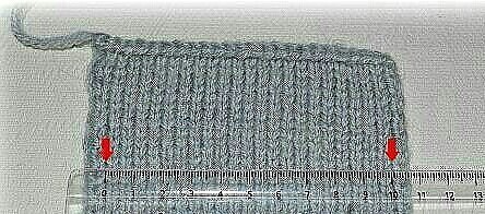 А дальше ищем следующее деление , которое находится точно между петлями . Теперь считаем между ними количество петель. Количество петель делим на сантиметры , получаем «Количество петель в 1 см». Например: Деление «10 см» находится точно на границе между петлями. От «0» до «10» у меня 21 петля. 21 петля : 10 см = 2 ,1 петли в 1 см. «Количество петель в 1 см» умножаем на «Обхват» ---------------------------------------------------------------------- Например: 2,1 петли в 1 см умножаем на «Обхват» 17 см (способ 1). 2,1*17=35,7 петли Округляем кратно четырем ---------------------------------------------- Это число округляем в большую сторону, чтобы оно делилось на 4. Например: В данном примере 35,7 (способ 1) округляем до 36. 36 петель делим на 4 спицы. 36:4=9 петель. По 9 петель на каждой спице. Просто подставляйте свои цифры. Считайте и набирайте петли. Свои замеры записывайте на листочке : -------------------------------------------------------------------- 4. Количество петель в 1 см = 5. Расчет петель на обхват = 6. Округление (кратно четырем) = 7 . Количество петель на спице = СПОСОБ 2 ------------------