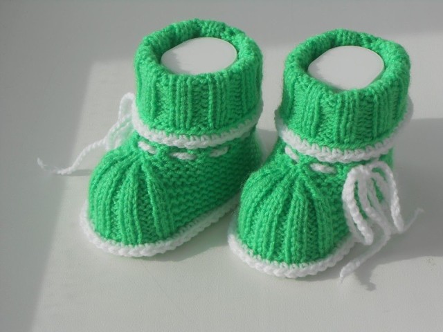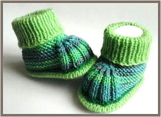 Виды вязки : 1) «платочная» (все петли лицевые) 2) резинка 2х2 (2 лицевые, 2 изнаночные петли) 3) резинка 1х1 (1 лицевая, 1 изнаночная) Начинаем вязать с середины подошвы. Подошва вяжется платочной вязкой. На спицы набрать 40 петель. 1-й и 2-й ряд – все петли лицевые. Начиная с 3-го ряда надо прибавлять в каждом втором ряду 4 раза по 4 петли (по одной петле по краям и две петли в середине). Новую петлю добавляем из перетяжек между петель. Перетяжку перед провязыванием нужно перекрутить, чтобы не образовалась дырка и вязание было плотнее. Перетяжку между петель поднимаем, перекручиваем и провязываем. 3-й ряд – 1 кромочная, 1 петлю прибавить лиц., 18 лиц., 1п. прибавить лиц., 2 лиц, 1 прибавить лиц., 18 лиц., 1 прибавить лиц., 1 кромочная. 4-й ряд – все лицевые. 5-й ряд - 1 кромочная, 1 лиц., 1 петлю прибавить лиц., 18 лиц., 1п. прибавить лиц., 4 лиц, 1 прибавить лиц., 18 лиц., 1 прибавить лиц., 1 лиц, 1 кромочная. 6-й ряд – все лицевые. 7-й ряд - 1 кромочная, 2 лиц., 1 петлю прибавить лиц., 18 лиц., 1п. прибавить лиц., 6 лиц, 1 прибавить лиц., 18 лиц., 1 прибавить лиц., 2 лиц, 1 кромочная. 8-й ряд – все лицевые. 9-й ряд - 1 кромочная, 3 лиц., 1 петлю прибавить лиц., 18 лиц., 1п. прибавить лиц., 8 лиц, 1 прибавить лиц., 18 лиц., 1 прибавить лиц., 3 лиц, 1 кромочная. 10-й, 11-й и 12-й ряды – все петли лицевые. Всего прибавлено 16 петель. На спицах теперь 56 петель. Подошва готова. Делим петли на 3 части – две боковые и средняя часть. Боковые части вяжутся платочной вязкой, средняя – резинкой 2х2. Петли надо рассчитать так, чтобы средняя часть пинетки начиналась и заканчивалась двумя лицевыми петлями. В моём примере получилось – средняя часть 18 петель и две боковые части по 19 петель, включая кромочную петлю. 1-й ряд – 1 кромочная, 18 лицевых, 18 петель резинкой 2х2 (2лиц, 2изн, 2лиц, 2изн, 2лиц, 2изн, 2лиц, 2изн, 2лиц), 18 лицевых, 1 кромочная. 2-й ряд - 1 кромочная, 18 лицевых, 18 петель резинкой 2х2 уже по рисунку (2изн, 2лиц, 2изн, 2лиц, 2изн, 2лиц, 2изн, 2лиц, 2изн), 18 лицевых, 1 кромочная. 1-й и 2-й ряд повторить ещё 5 раз. Теперь после подошвы провязано 12 рядов. Со следующего 13-ого ряда начинаем делать убавления. 13-ряд - 1 кромочная, 18 лицевых, 2 вместе лицевой, 2 вместе изнаночной, 2 вместе лицевой, 2 вместе изнаночной, 2 вместе лицевой, 2 вместе изнаночной, 2 вместе лицевой, 2 вместе изнаночной, 2 вместе лицевой, 18 лицевых, 1 кромочная. Петли при убавлении провязывать так , чтобы они не были перекрученными. Тогда рисунок будет ровным. 14-й ряд - 1 кромочная, 18 лицевых, 1 изн, 1 лиц, 1 изн, 1 лиц, 1 изн, 1 лиц, 1 изн, 1 лиц, 1 изн, 18 лицевых, 1 кромочная. 15-й ряд - 1 кромочная, 18 лицевых, следующие 1лиц и 1 изн петли провязать вместе лицевой, 2 вместе лицевой, 2 вместе лицевой, 2 вместе лицевой, 2 вместе лицевой (1 петля от резинки и 1 петля от боковой части – «платочной» вязки» ), 17 лицевых, 1 кромочная. 16-й ряд - 1 кромочная, 17 лицевых, 5 изнаночных, 18 лицевых, 1 кромочная. 17-й ряд - 1 кромочная, 18 лицевых, 2 вместе лицевой, 1 лицевая, 2 вместе лицевой, 17 лицевых, 1 кромочная. 18-й , 19-й , 20-й ряды – все петли лицевые. Далее вяжем резинкой 1х1 24 ряда. Петли закрыть. Нить оборвать, оставив 20-25 см для сшивания. Сшиваем вертикальным трикотажным швом (сшиваем по лицевой стороне, а шов остаётся на изнаночной стороне) Начать сшивать пинетку нужно с изнаночной стороны, чтобы на отвороте пинетки шов оказался на изнаночной стороне. Сшить примерно 3/4 резинки 1х1. Выворачиваем на правую сторону и продолжаем сшивать до конца Оформляем пинетки по своем