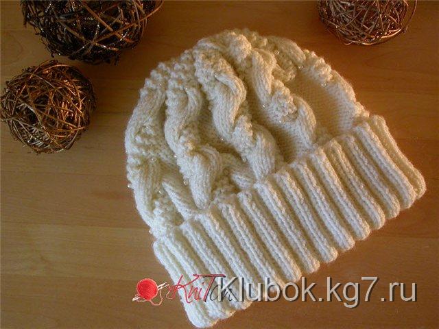 Описание: Описание шапочки. На ОГ 55-57. Пряжа Ализе Ланаголд,(100 гр. 240 м.) 130-140 гр. Набрать на спицы №4,5 120 п. и вязать междукромочными резинко 2на2 14 см. Далее вязать спицами №5 основным узором,равномерно прибавив в первом ряду после резинки 18 п. (=138 п.). Основной узор:кромочная, 7 п. изнаночной гладью, 5 петель платочно вязкой, 5 петель лицевыми,повторять до конца ряда, кромочная. Косу начинать вязать на третьем (или пятом)ряду от резинки и затем в каждом 8-м ряду. Коса: кромочная, 7 п. изнаночнойгладью, 5 петель платочной вязки переместить на вспомогательную спицу иоставить за работой, провязать следующие 5 петель лицевой глади, затем петли совспомогательной спицы провязать платочной вязкой, повторять рапорт до концаряда, кромочная. Изнаночные петли вязать по рисунку. Когда до нужной высотыостанется 2 сантиметра начинайте делать убавки.