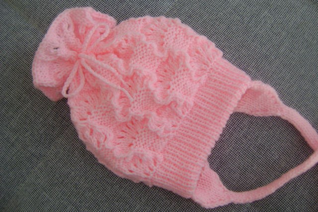 Затем сложила вдвое и провязала все петли ,которые на спице вместе с теми ,что набирались на шапочку.Можно просто сложить и пошить.