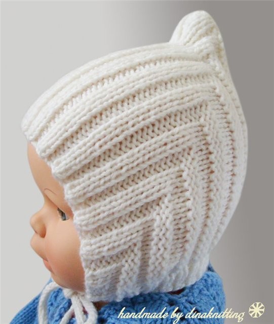 В этой версии шапочка связана одной деталью, сложенной пополам и сшитой сзади, к которой затем пришита узкая планка вдоль нижнего края, надежно закрепляющая шапочку на голове малыша.