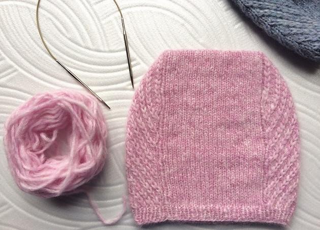 Далее на переднюю и заднюю часть шапки вяжем лицевой гладью, боковые по схеме: