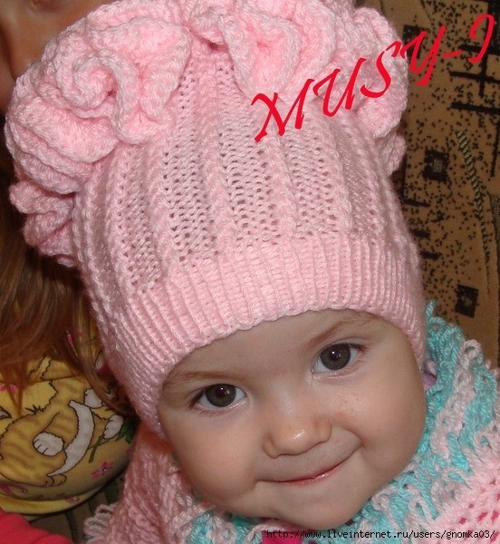 Шапочка для девочки с рюшамиKlubokhttp://klubok.work/23/189/7931/Klubokhttps://klubok.work/css/image/top-logo-en.pngШапочка для девочки с рюшами Материалы: пряжа "Детский акрил" - 50 гр/140 м; спицы № 3 и крючок № 3. Возраст - 9 -12 месяцев. На обхват головы 45 см набирать 82 петли и вязать двойную полую резинку высотой 4 см, а затем перейти на узор. Узор: 1 ряд: 1 изн, *1 лиц. снять на дополнительную спицу перед работой, 1 лиц, затем провязать лицевую петлю с дополнительной спицы, 2 изн. и так до конца, перед кромочной 1 изн. 2 ряд: по рисунку. На высоте 15 см начинаем вязать донышко. Донышко начать так: продолжая полотно, убавлять постепенно через каждые 8 петель, 7 петель и т. д. по 2 вместе, ну как мы на носках носик убавляем, когда на спицах осталось петель 20, их собрать на нить и стянуть туго. Затем сзади сделать шов, но не до конца полотна. Вязание волана. Набрать по кругу крючком петли и в след. ряду из каждой петли набирать по 4 ст. с/н, в след. ряду - по 3 ст. с/н. и всё.