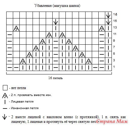 3) 1л, 1и, 2ви, 4л, 1и, 4л, 2ви, 1и (убавлено 18 петель)